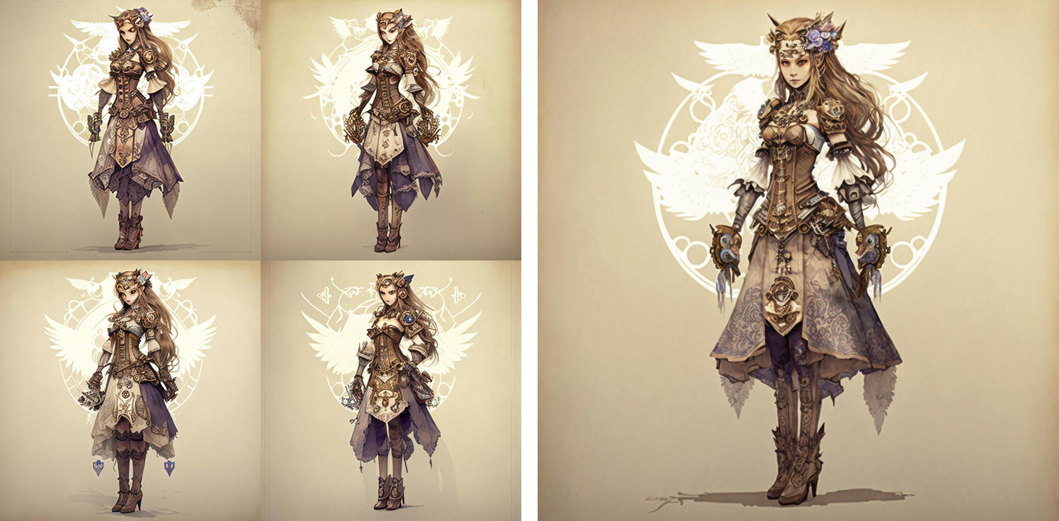 Basically, every single image was missing a story and context. None of the created characters had usable weapons, armors, tools, or looked like they were full, complete creations. If a human artist was tasked with creating such a character, I'm confident they would have understood how to make a character that made sense by creating a story, a world around them, and making them instantly recognizable.